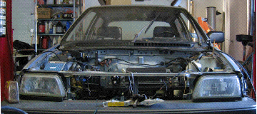March 7 - 8. The +12 volt output at the rear of the converter easily connects to one of the fusible links. The other wire bolts to the frame of the car using a 10 gauge crimped ring connector (shown later in the picture of the inertia switch):