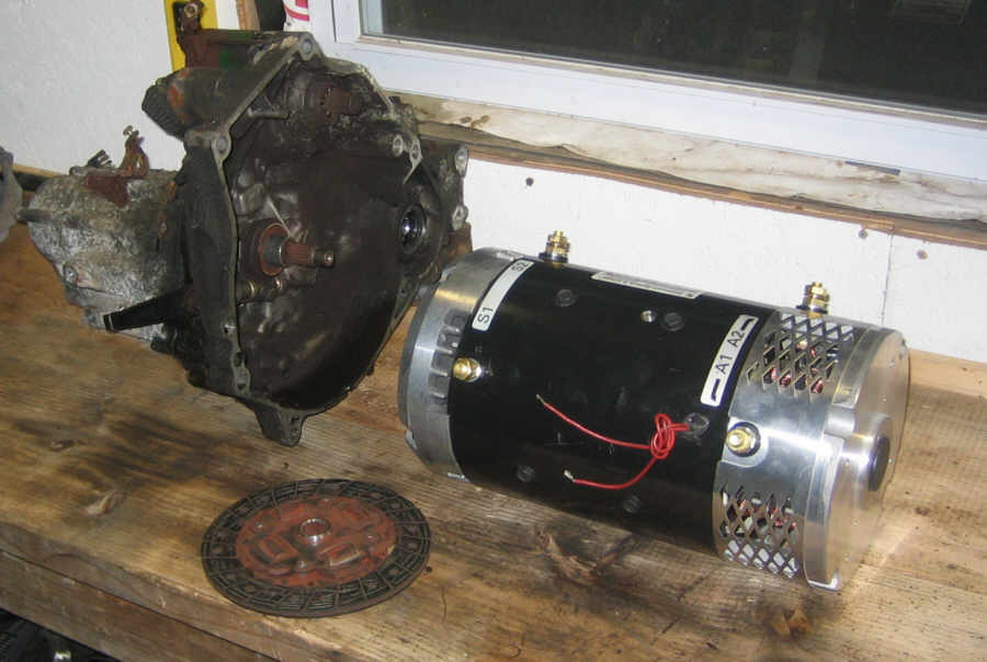 I need a metal plate that will bolt to the transaxle housing and to the motor. I need a coupler that will smoothly transfer the power of the motor to the shaft of the transaxle. I can't buy these at Auto Mart. I could send my clutch disk to EV America with some measurements and they would send me everything I need to connect these together.