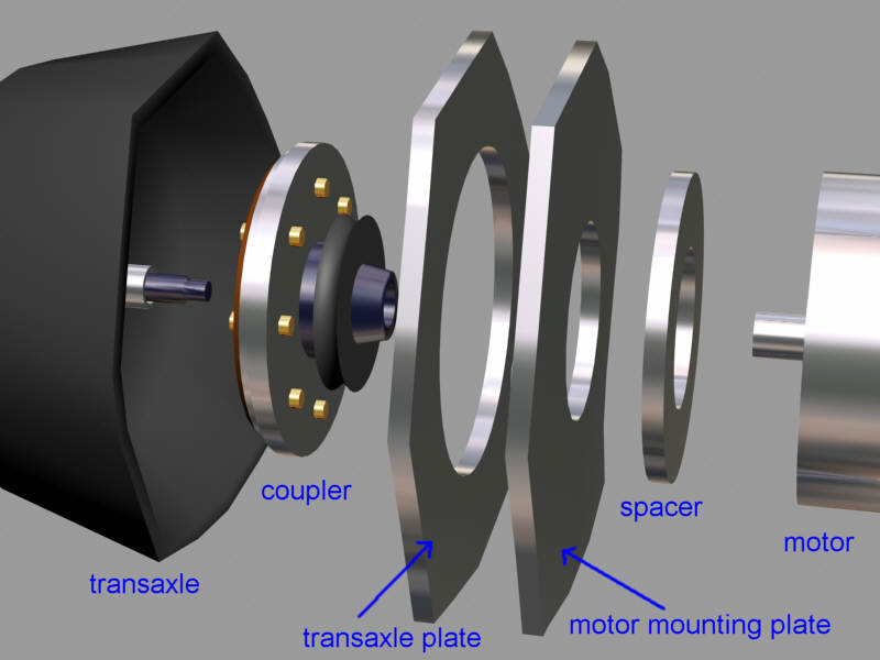 I made a computer model of the transaxle - coupler - motor including plate and spacers to help me visualize the big picture: