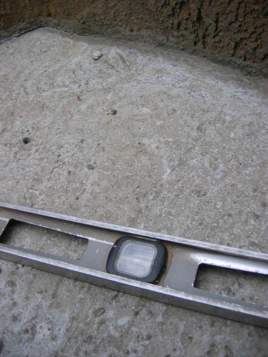 The east trench. This one was overfilled, so we dragged the concrete southward using garden rakes, hoes and a shovel. Thanks, kids.