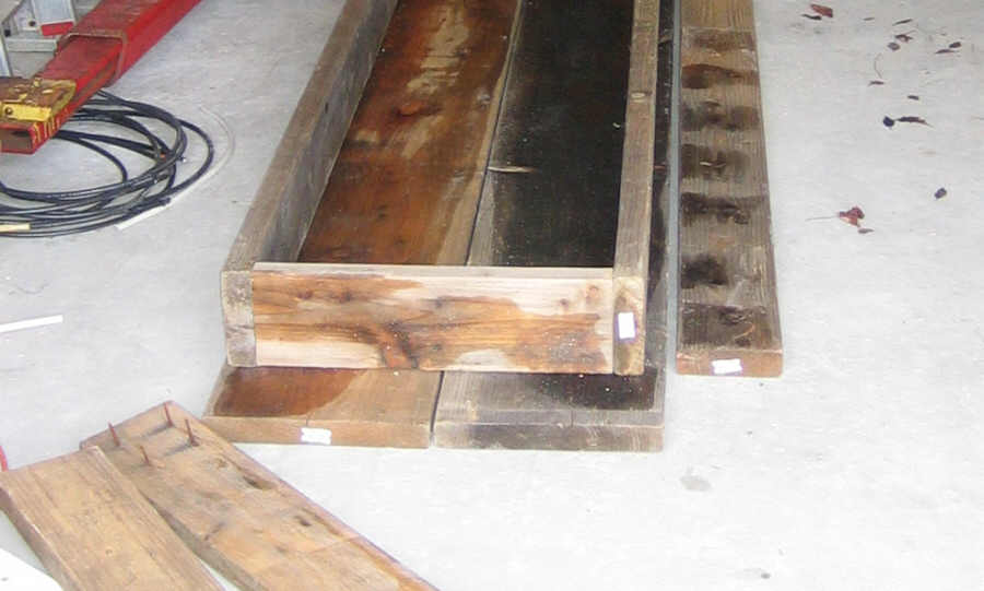 Time to use some of the weathered wood in front of the garage. I moved a few pieces into the auto bay, 2 2x12's previously used as scaffolds, and various 2x6's: