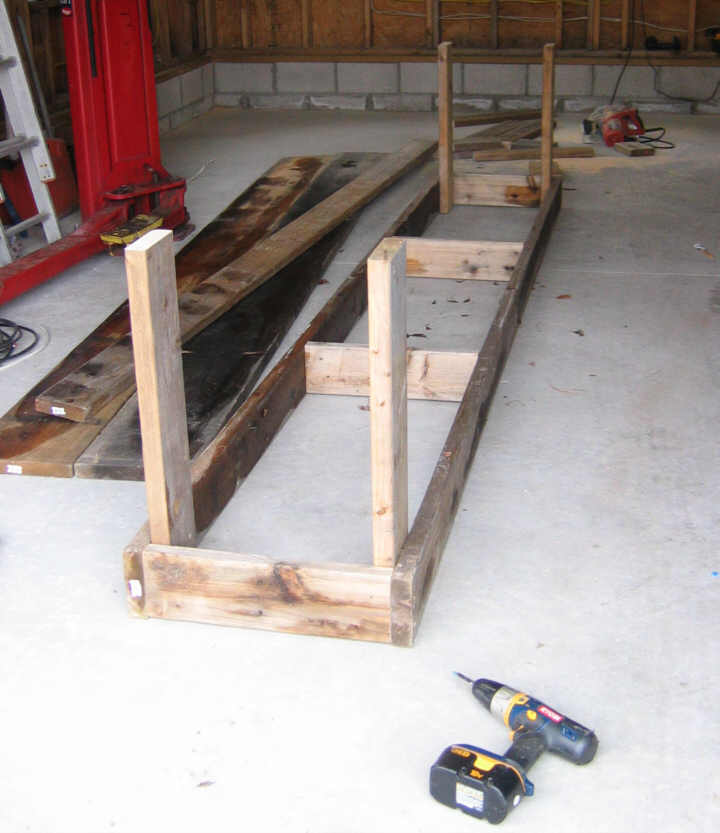 Six legs on, back stop nailed on, top screwed down: