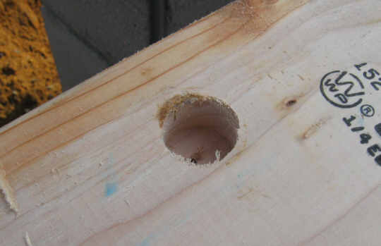Here is a northeast wall section temporarily nailed to boards nailed to the sill plate and a cleat in the ground, awaiting other wall sections to nail it to.