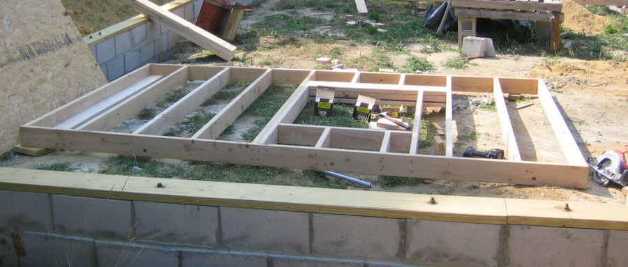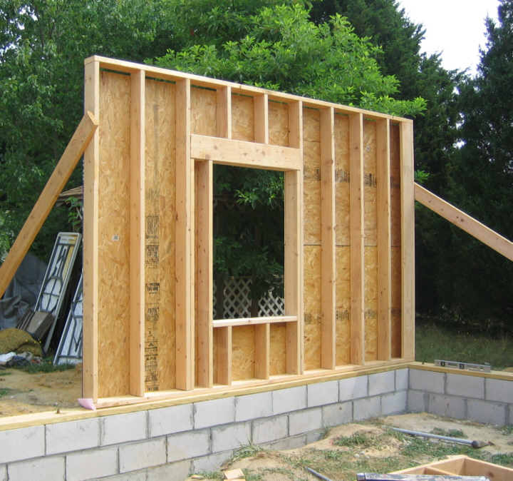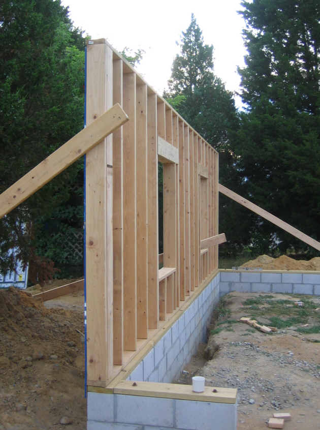 July 8. Here is one framed section of the first wall, ready for sheathing: