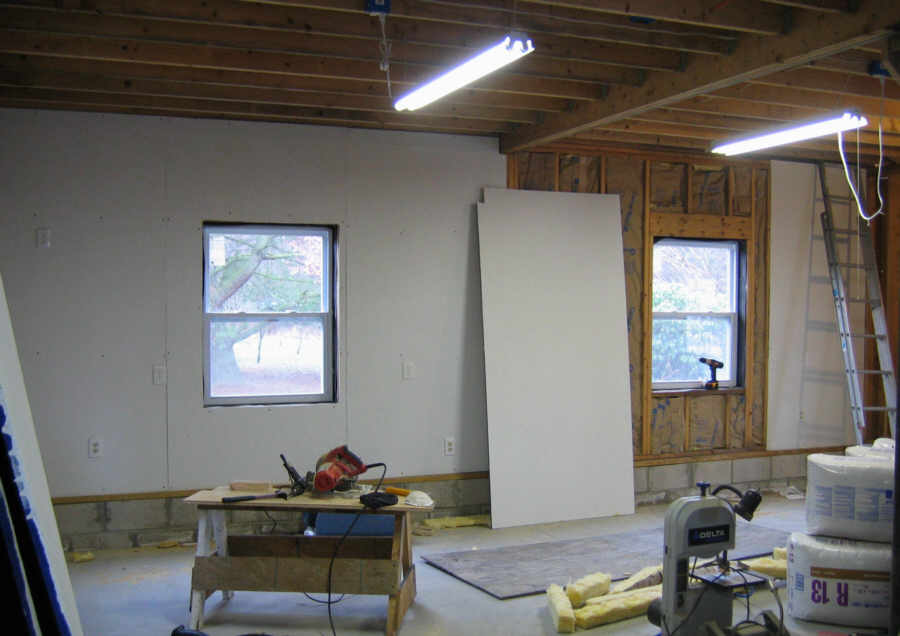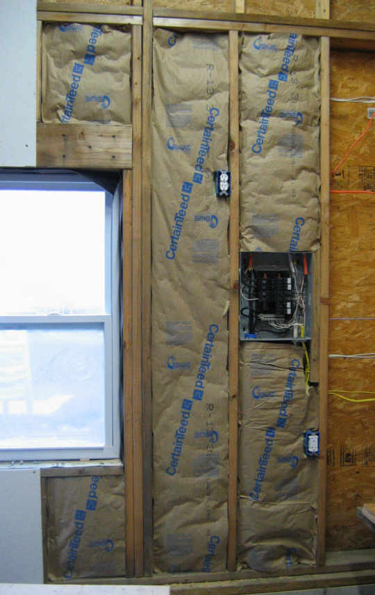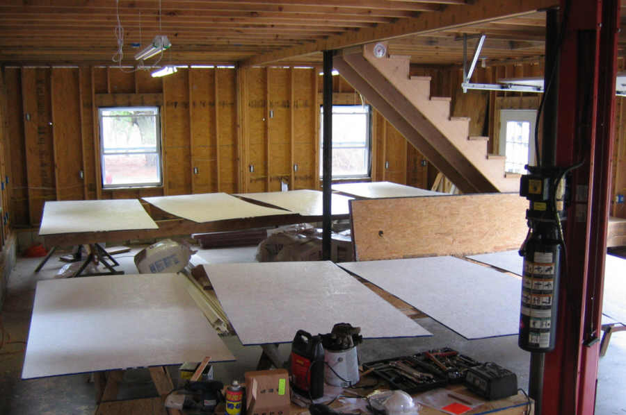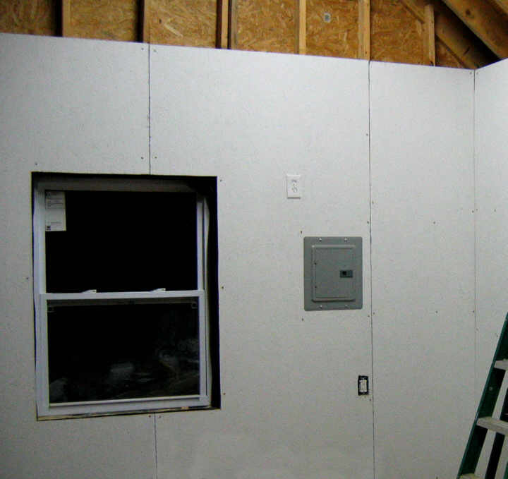 I finished this wall and built a woodshop bench. With nicer weather, I stopped working on inside walls and did the siding. I will finish the insulation and walls after I get the building inspected.