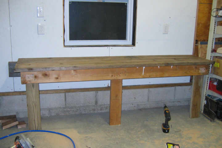 October, 2008. I finally got back to the east wall because I wanted to install a welder's bench. Here is a section I finished on October 9, including an 8 foot long welder's bench: