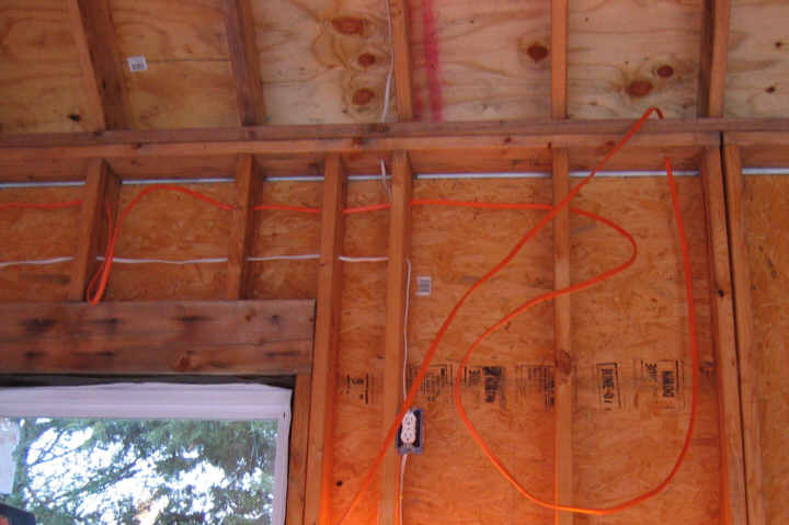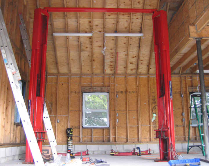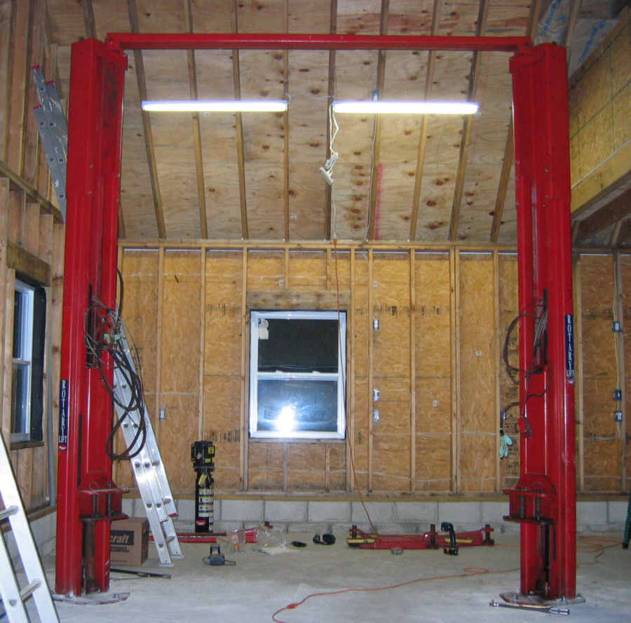 January 24. The lift requires a 30 amp circuit. Try to pull 10-2 romex through the wall on a cold day in January! The wire will go up the ceiling, stapled to a rafter:
