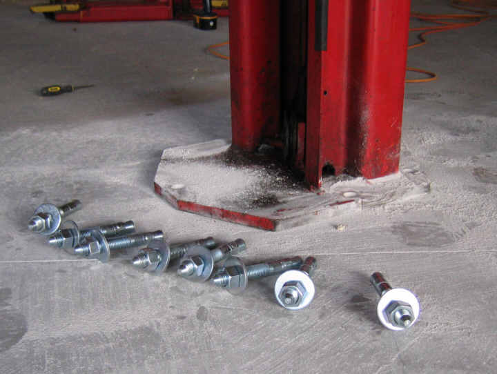 These are the wedge anchors that will be tapped into the drilled holes. I can't count this high. There are seven holes in each plate, but I bought 8 wedge anchors for each plate: