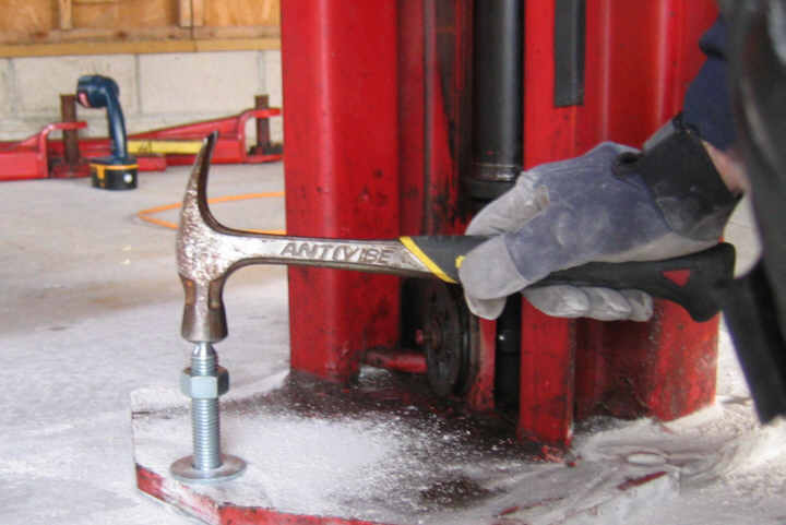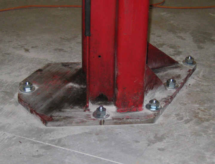 Here is the lift, plumb and bolted down. I need to get a 1 1/8" socket so I can torque all the nuts to 150 foot pounds: