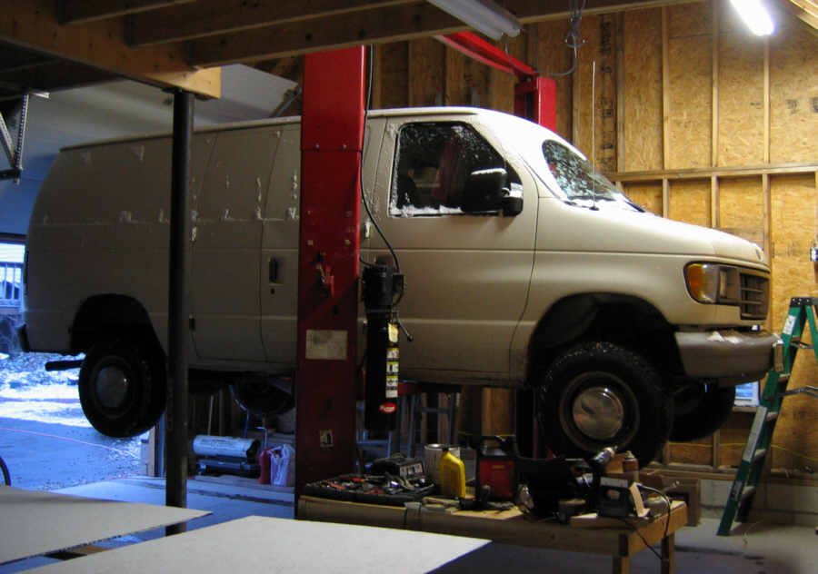 February 2. After checking and rechecking cables, locking mechanisms, I put my car on the lift. Yay!