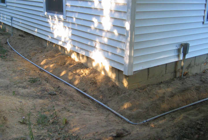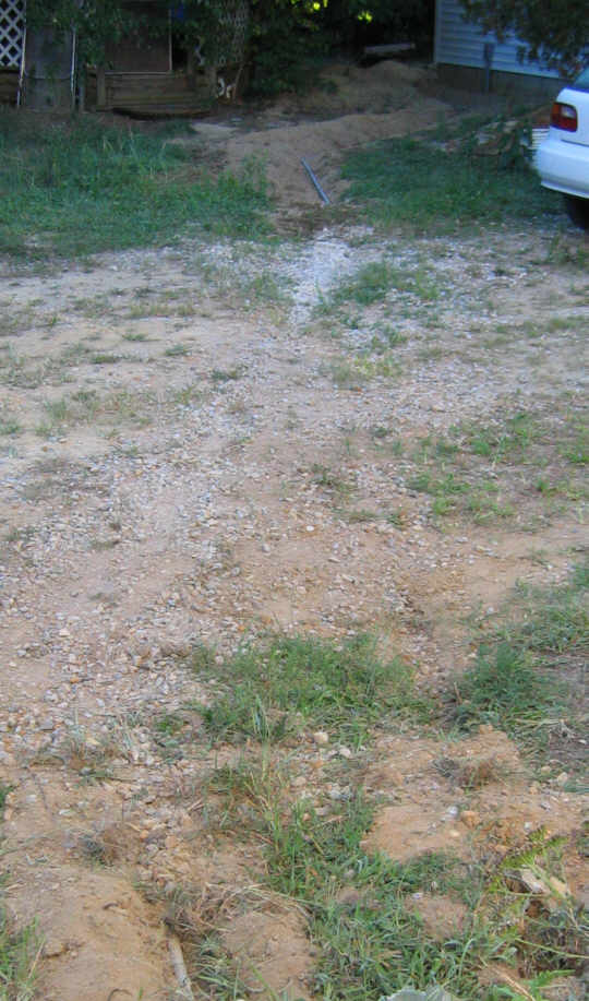 Here is a shallow trench near the same trench that holds the power lines. The half-inch PVC conduit holds two cat-5 (8-conductor) cables. I will use one cable for two phone lines, and one for computer interface.