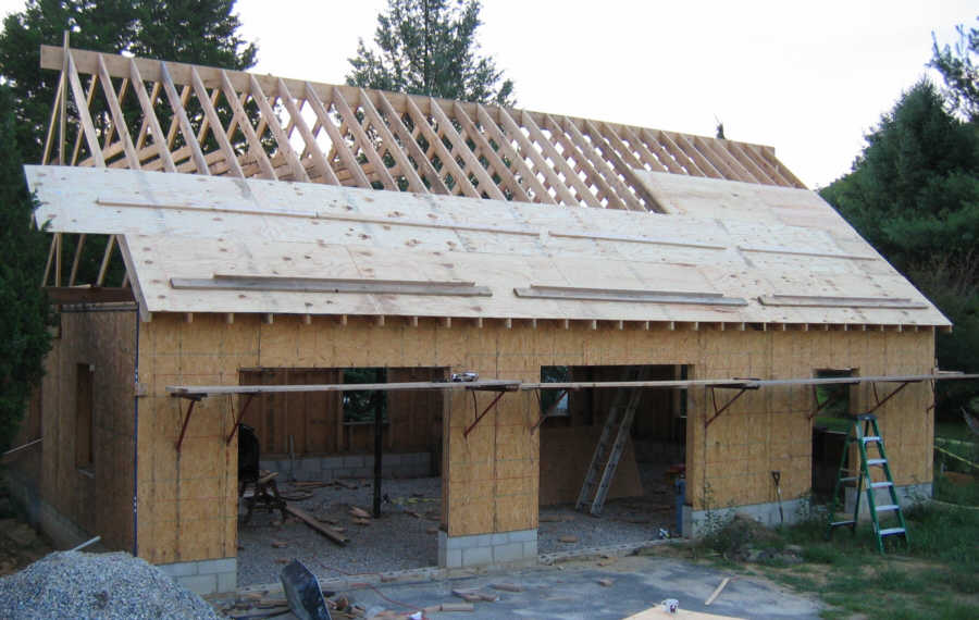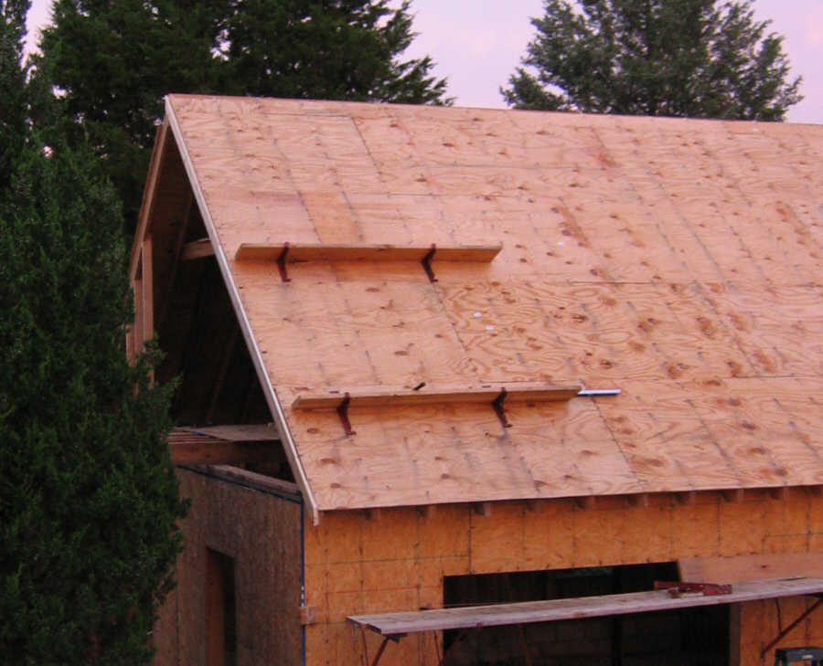 Here is the first course of 4x8' 1/2" plywood decking: