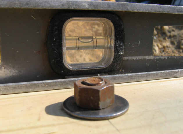 I drilled 5/8" holes for 1/2" bolts to allow for little errors in block placement or variations in the boards.