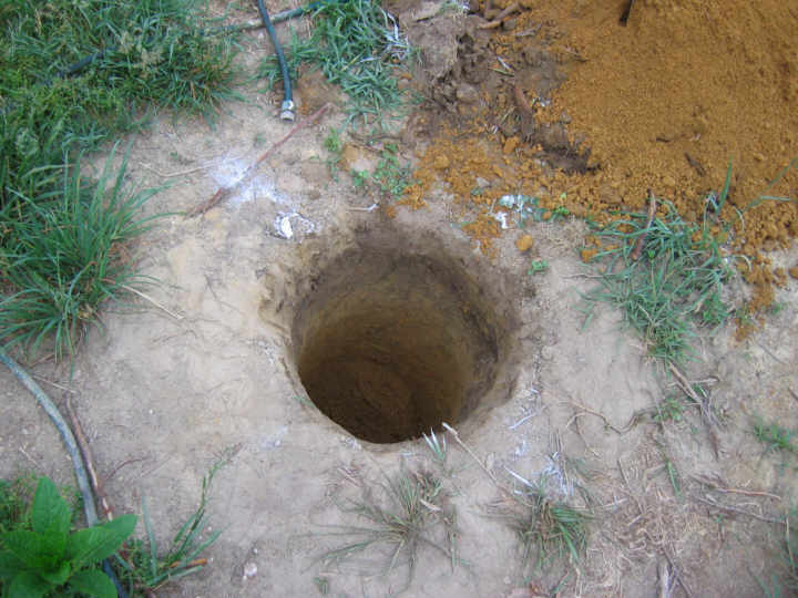 Hole dug. Do I need to put a concrete tube in this hole? Monte Burch says, "...you can simply use the circumference of the holes as the forms for the concrete."