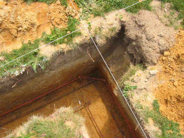 Rebar in the corner. See how the trench follows the lines: