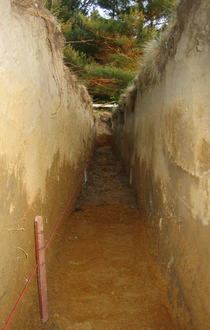 Here is the east trench in the process of being scraped:
