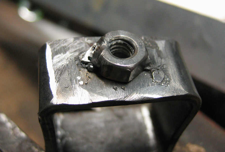 The nut is welded on here. This is imaginatively called a weldnut: