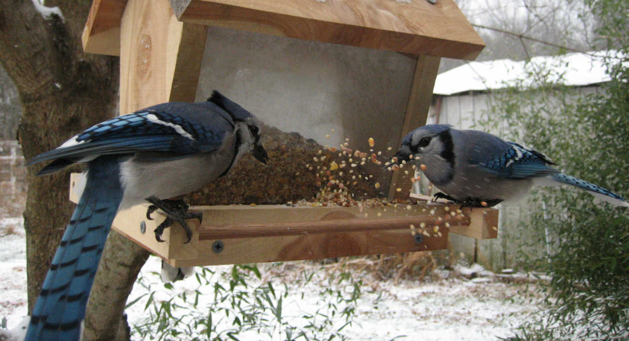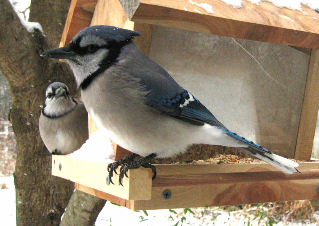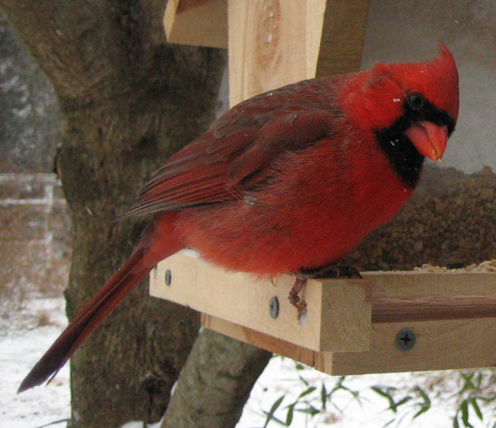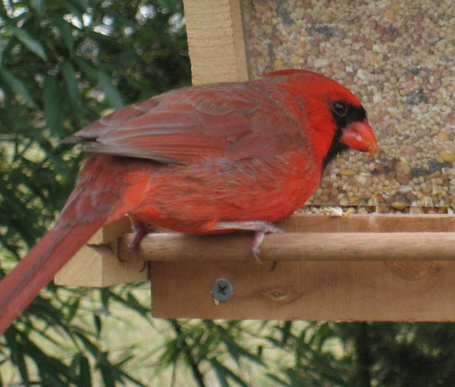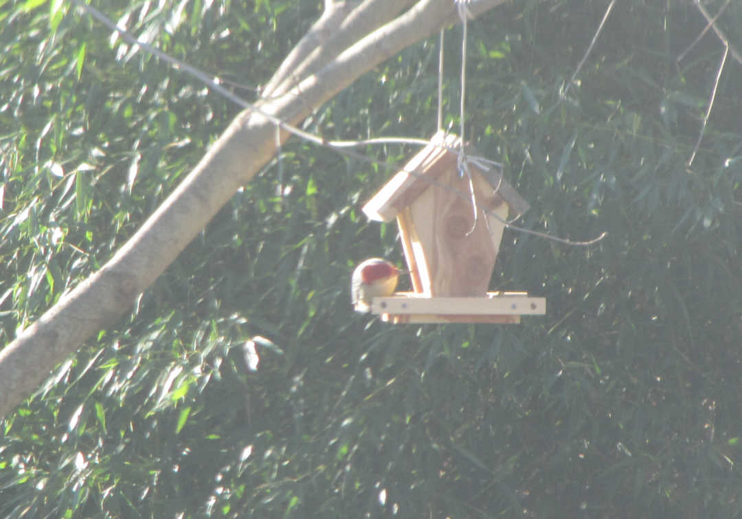 I hung the feeder away from the house on a small maple tree near plenty of cover because birds need to be able to quickly hide from predators like cats and hawks. The disadvantage: I can't get near the feeder to photograph the birds. Pictures from the house are fuzzy.
