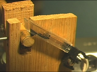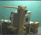 To take many sequential pictures, I made a mechanical device to repeatedly push the shutter of my digital camera, shown at the top of the page. First, it simply cycled at the speed of the electric motor, taking a picture every 5 seconds or so.