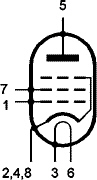 Here is a pin-out diagram for the 5840 tube, to help clear up the circuit diagram: