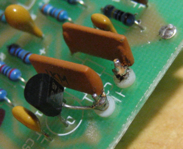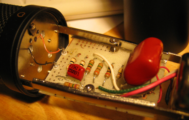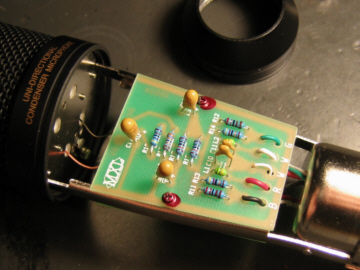 The picture above shows the capacitor and resistor layout. Note the teflon standoffs where the capsule wires are attached. I took these off the orignal MXL circuit board: