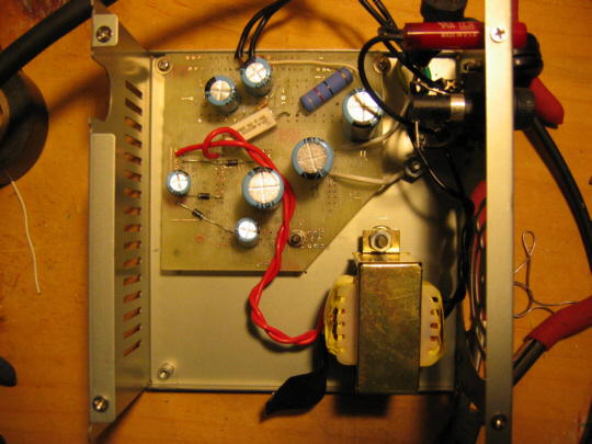 Nothing elegant. I admire beautiful circuit board work but it gets hidden away in box that no one ever sees. The power supply needs to function. This one does. Here is a picture looking into the power supply box. You can see the fuse holder and pilot light on the upper right.