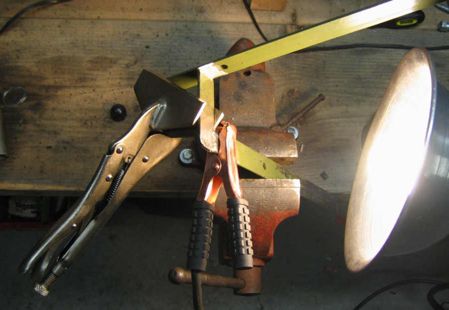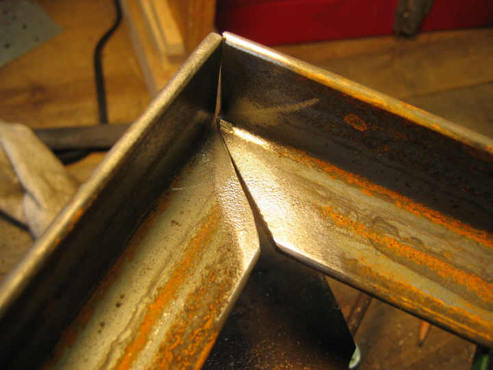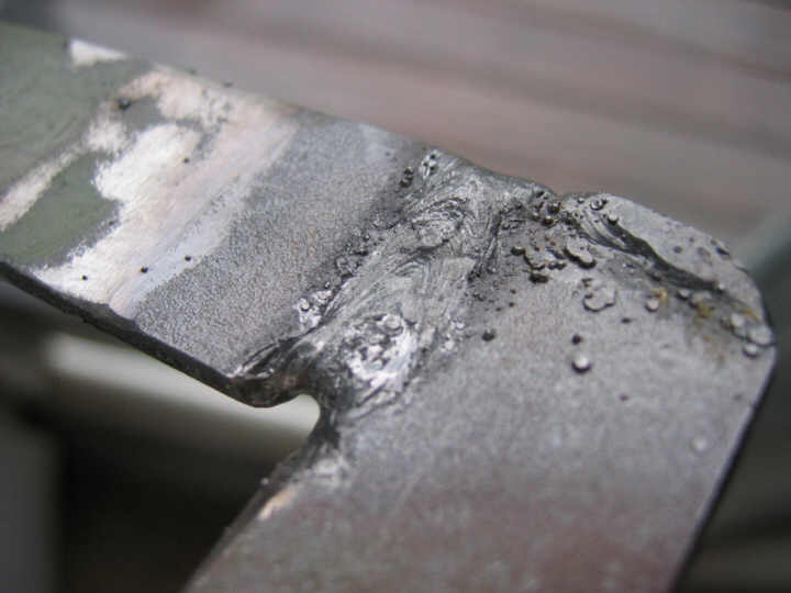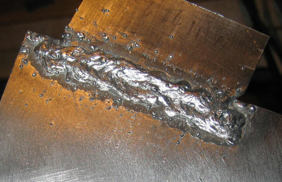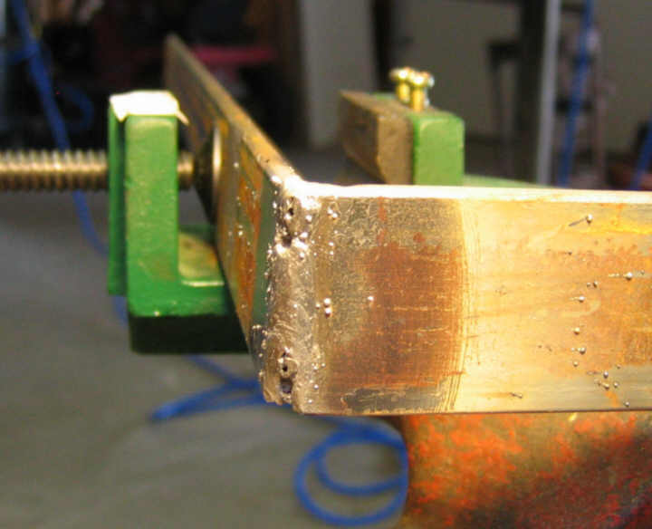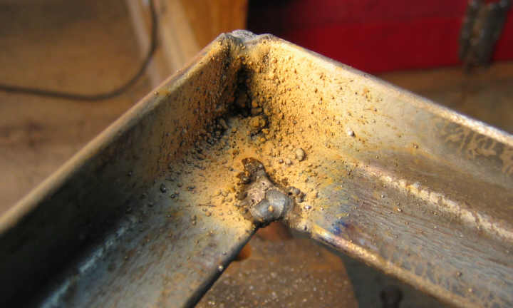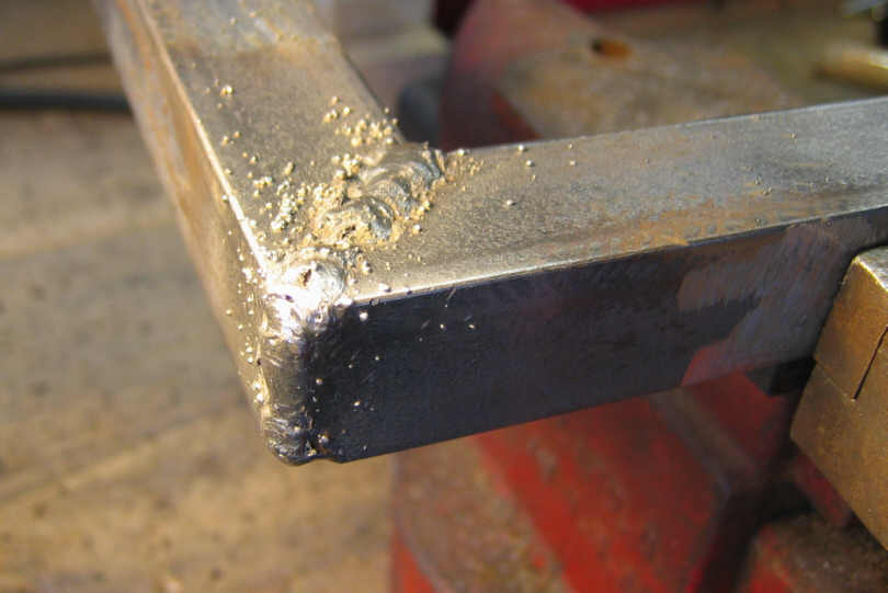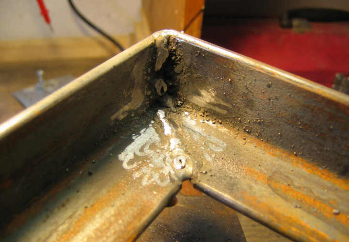 Ugly weld, cleaned up a little with an air grinder. The vertical is particularly bad: