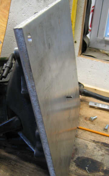 Then I leaned the aluminum plate against the pins to transfer the location of the pins to the plate:
