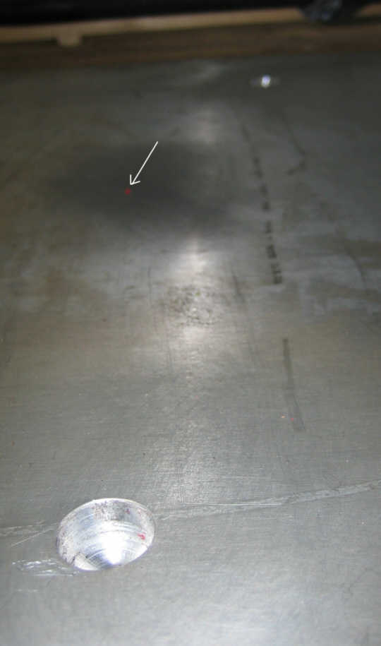 Then I set the plate on the alignment pins to mark the plate with a red dot: