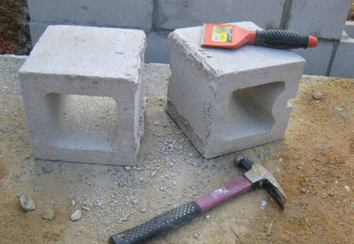 I cut various amounts off of six blocks. These will be used on the 4th course to flatten out the hump. Yes, I'm a mason.