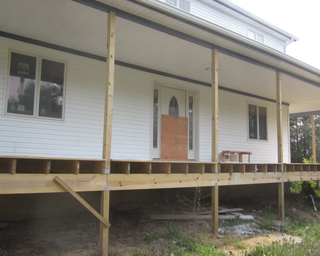 We got our temporary certificate of occupancy at the end of April, 2013. We had to bar the doors onto the porch to get that certificate since the porch had no stairs or railings: