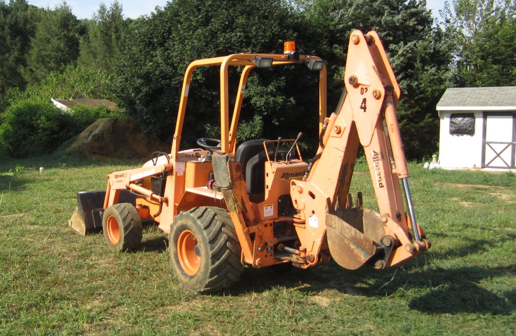 July, 2013. Time to grade the area around the house. Here is the little backhoe I rented. You can see one of the three piles of dirt left over from the septic pit dig. Well, someone has to move all that dirt. It might as well be me: