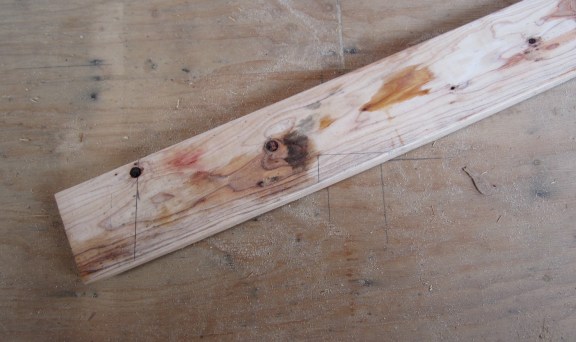 I marked the plumb cuts and the birdsmouth cut. This will be the template rafter: