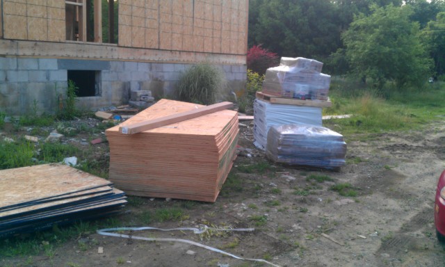 That black stuff along the side dormer wall is Weatherwatch or equivalent. It is thicker than regular roofing paper and will never leak. It's what I put on the roof under the solar panels on the old house. I asked the roofer to put it over the whole roof.