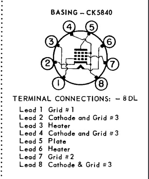 I looked up the pin indentifications on line, found this diagram for the 5840 tube: