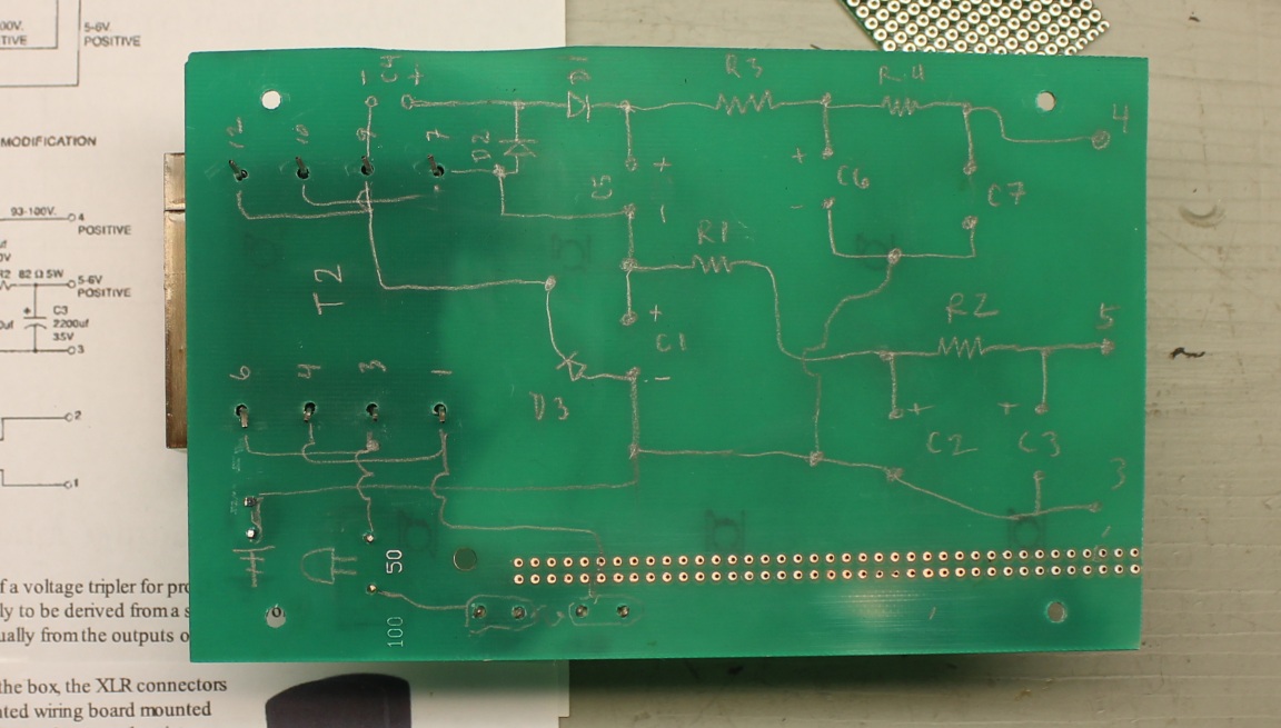 To help verify the wiring, I made a diagram from a picture of the board and clearly identified the tiny components: