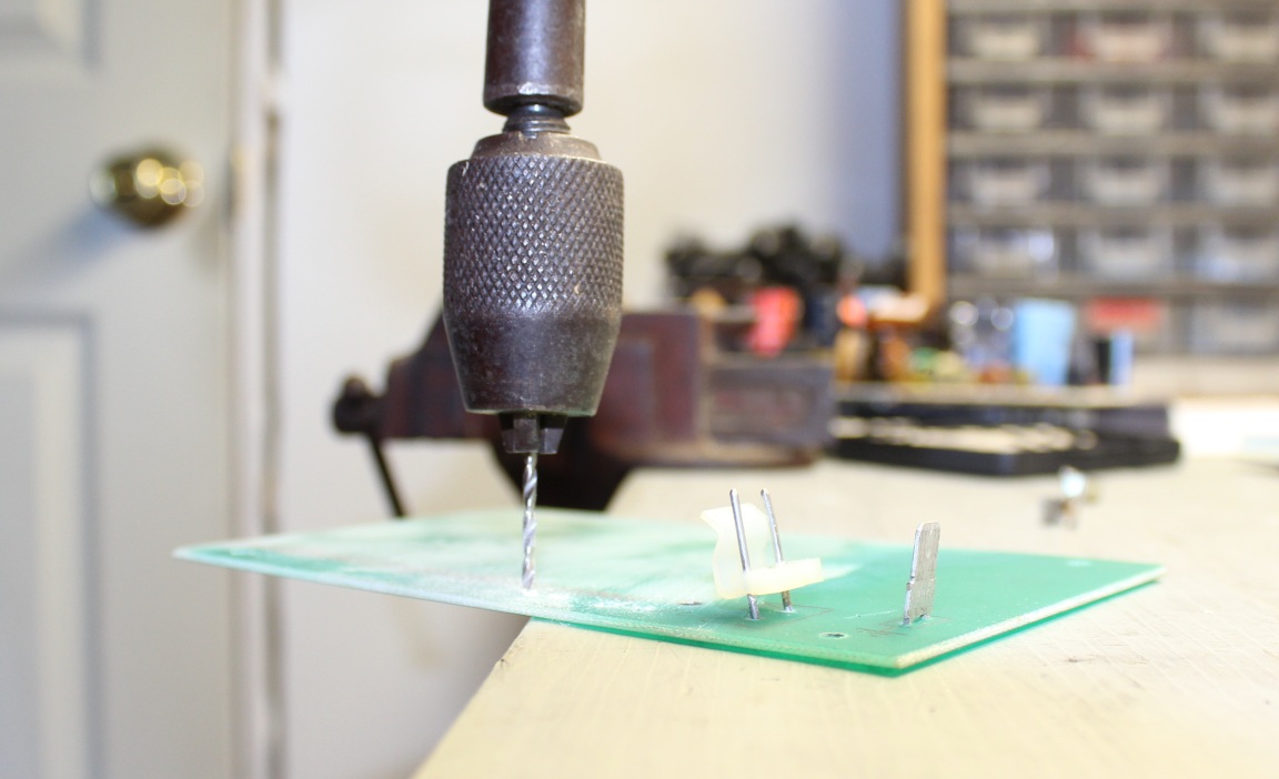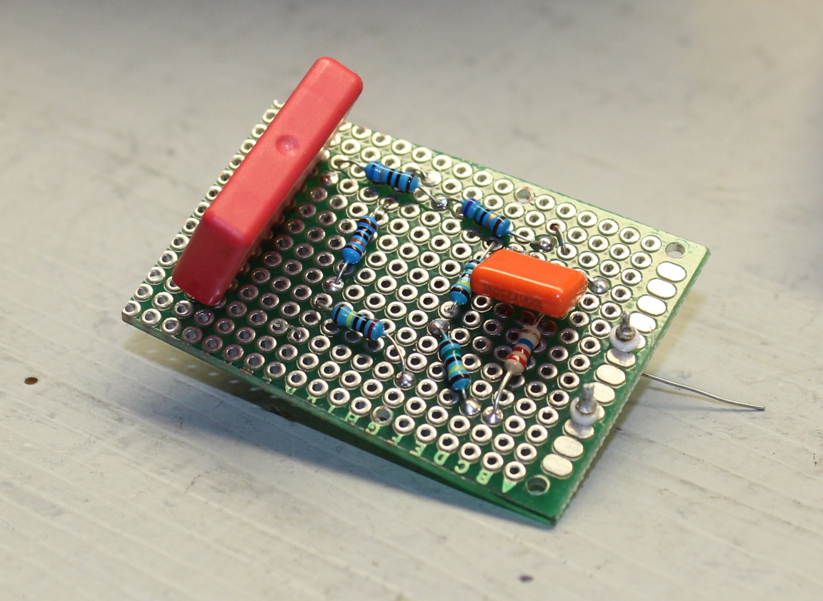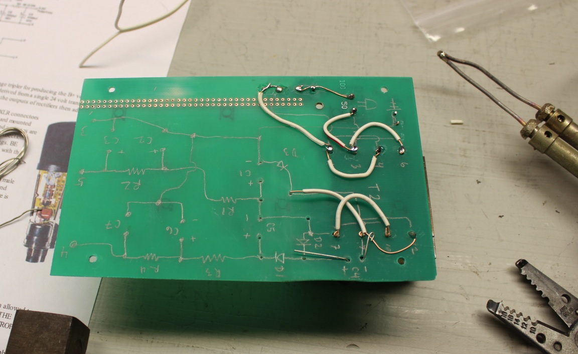 December 28. I mounted and soldered the components on the mic circuit board. On the right you see I pulled the teflon standoffs from the original board and mounted them on the new board: