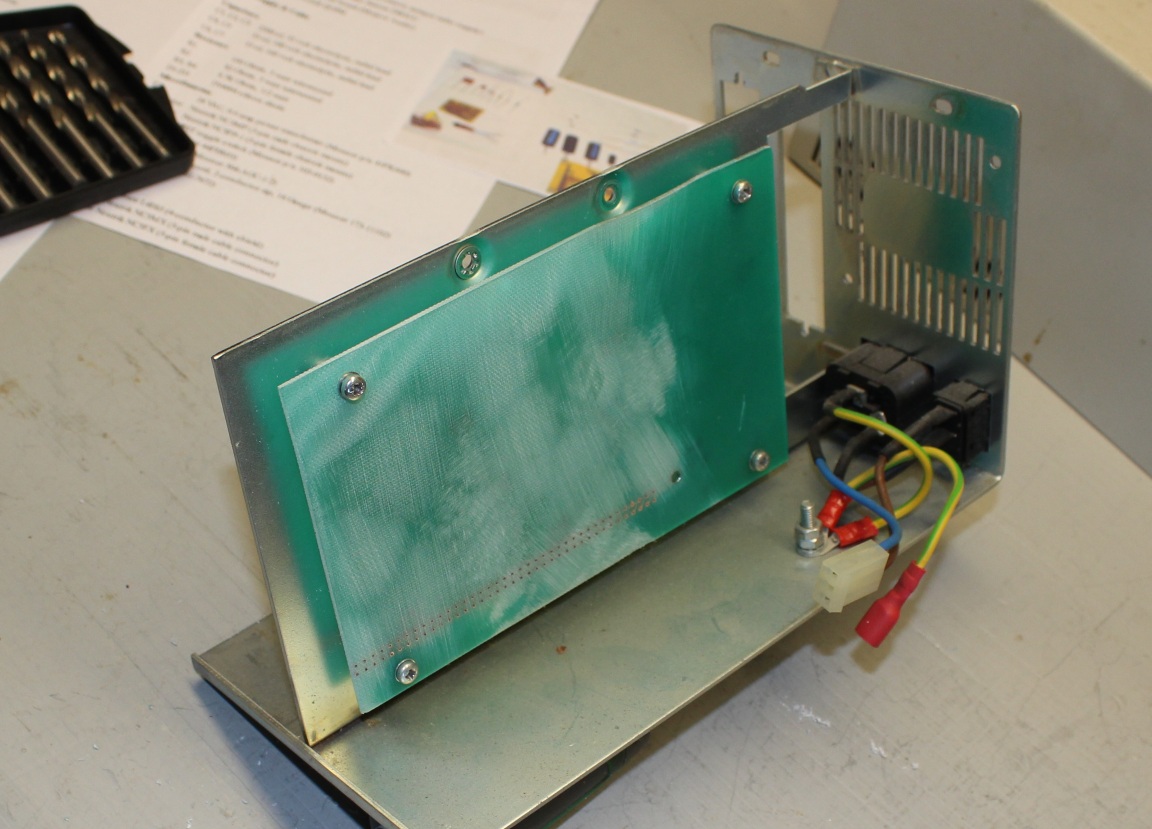 I checked all the power supply connections, then mounted the circuit board in its box. Nice fit: