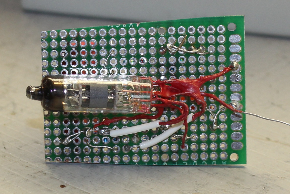I checked the connections visually while making check marks on the circuit diagram. Then I soldered the tube wires on the other side. I first painted the wires near the base of the tube with "liquid tape" and I added insulation where necessary to further protect the tube from short circuits: